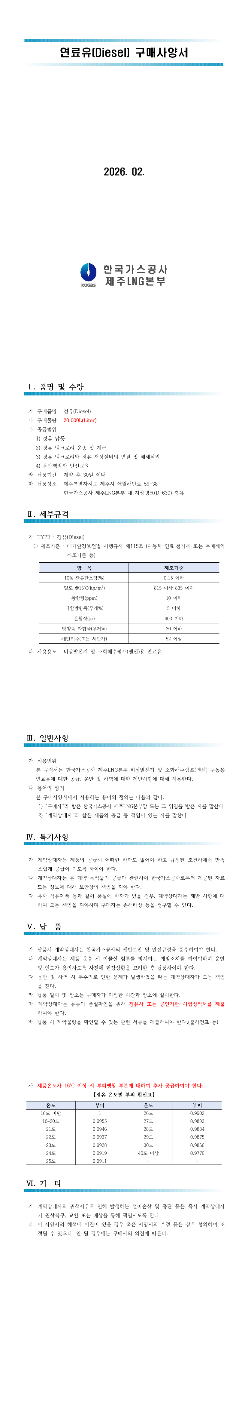 [전자견적서 수취]비상발전기 및 소화해수펌프(엔진)용 연료유 구매_제주LNG본부 |