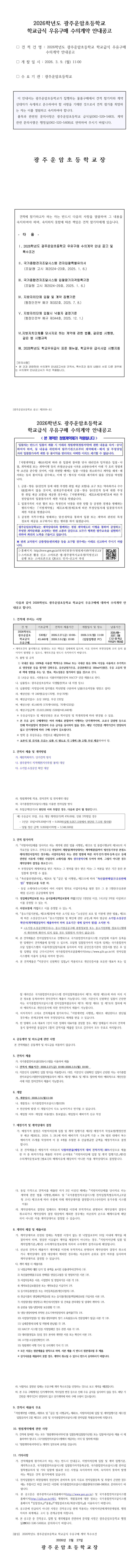 2026학년도 광주운암초 학교급식 우유구매 수의계약 안내공고 |