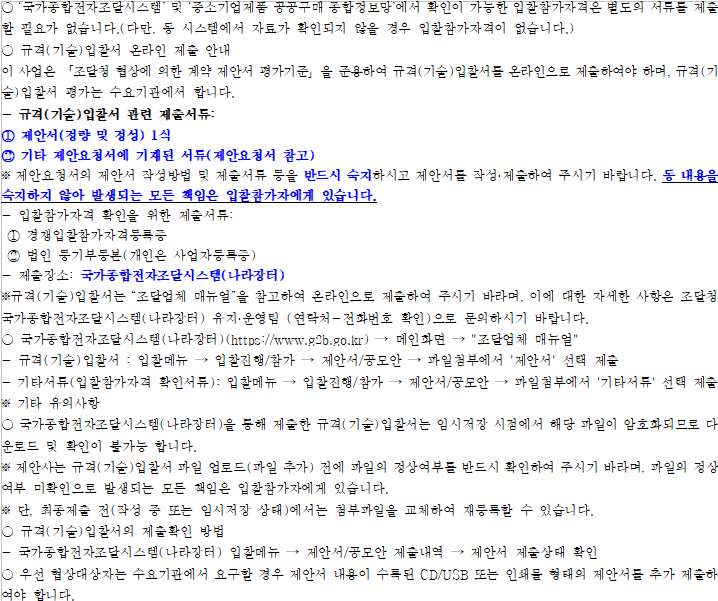 기타 세부사항은 전자입찰 공고서에 첨부된 과업내용서, 내역서 등을 반드시 확인하시기 바랍니다.