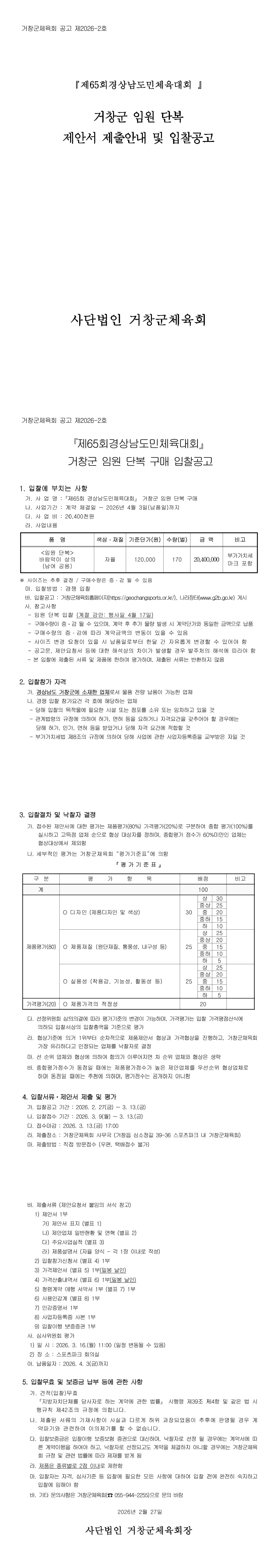 제65회 경남도민체육대회 거창군선수단 임원 단복 입찰 |