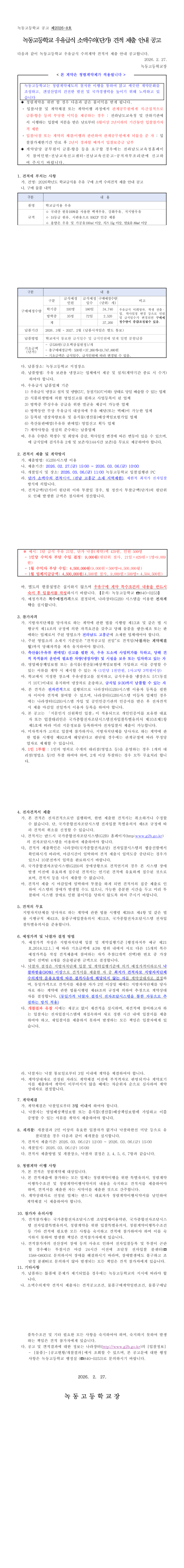 녹동고등학교 우유급식 소액수의(단가) 견적 제출 안내 공고 |