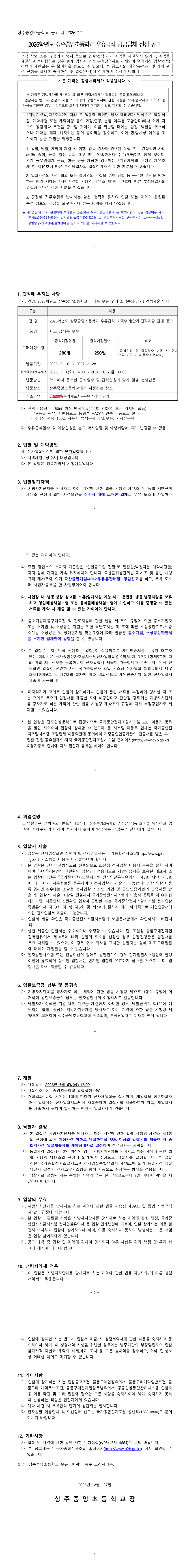 [긴급] 2026학년도 상주중앙초등학교 학교급식용 우유구매 소액수의(단가) 견적제출 안내 공고 |