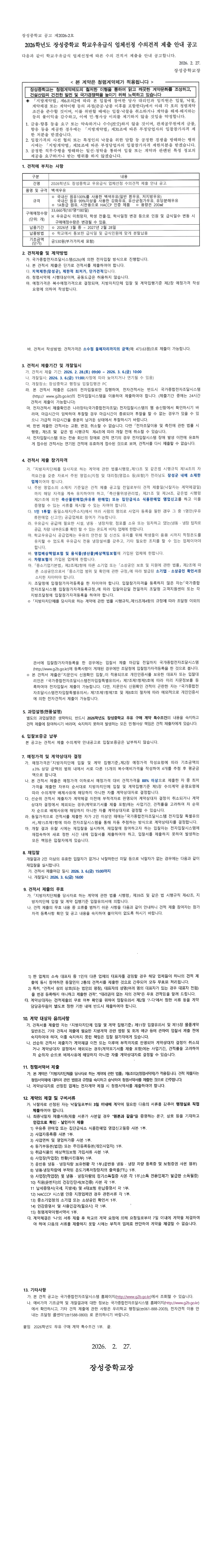 2026학년도 장성중학교 우유급식 업체선정 수의견적 제출 안내 공고 |