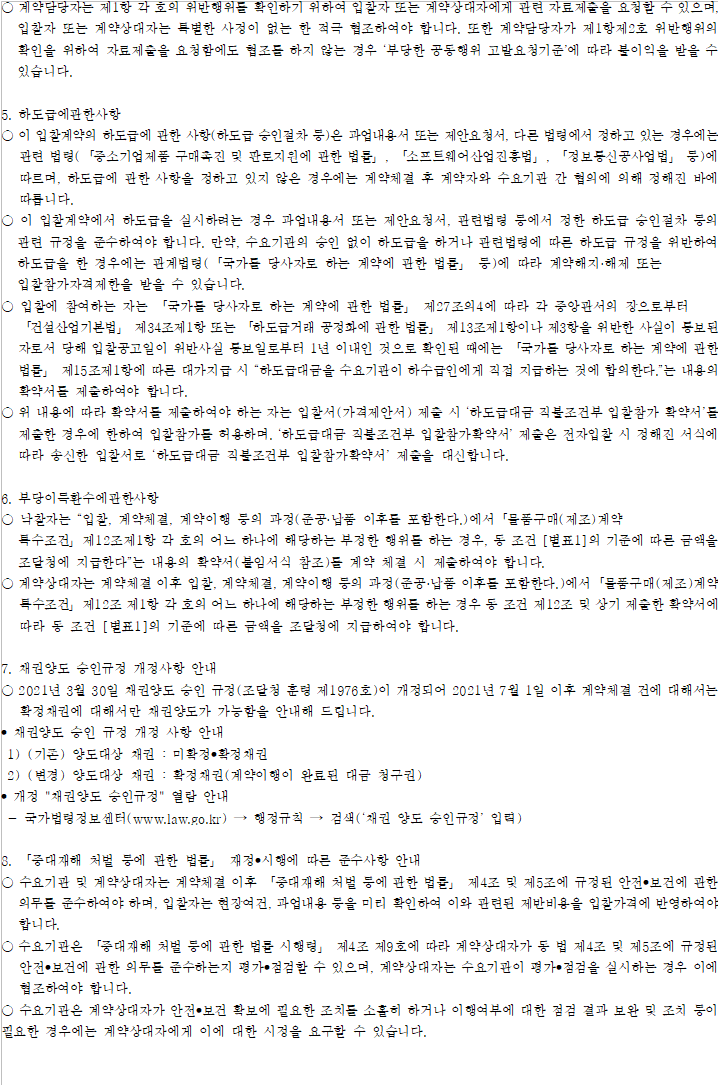 ○ 이 입찰에서 동일가격 입찰에 대해 추첨은 국가종합전자조달시스템 전자입찰특별유의서 제15조에 따라 최종낙찰자를 선정합니다.