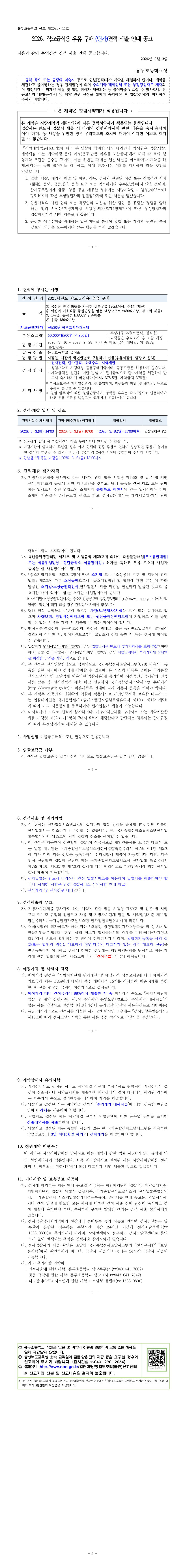 2026학년도 학교급식용 우유 구매 소액수의(단가) 견적 공고 |