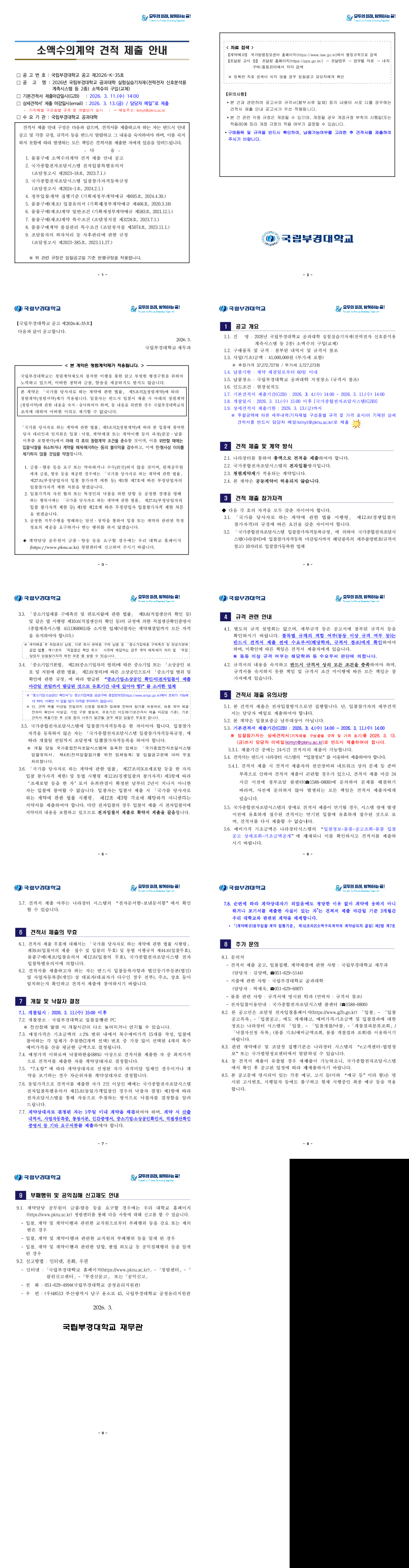 2026년 국립부경대학교 공과대학 실험실습기자재(전력전자 신호분석용 계측시스템 등 2종) 소액수의 구입(교체) |