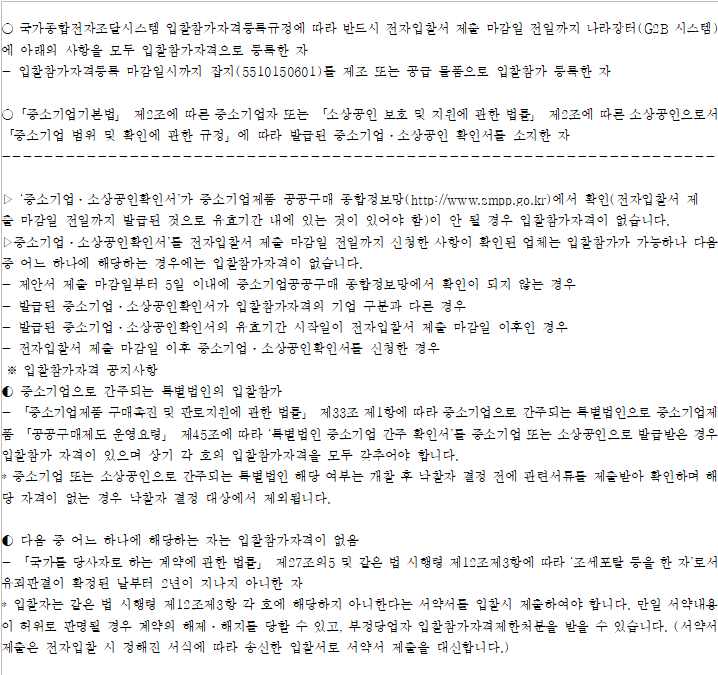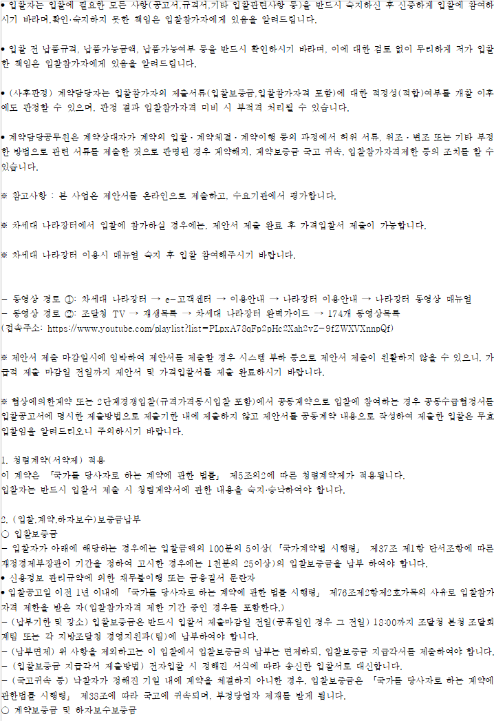 기타 세부사항은 전자입찰 공고서에 첨부된 과업내용서, 내역서 등을 반드시 확인하시기 바랍니다.