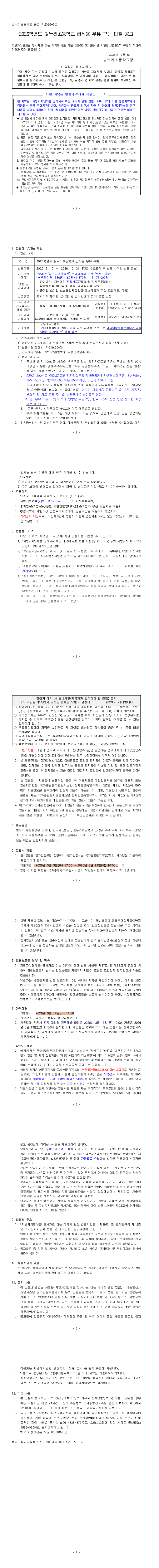 2026학년도 빛누리초등학교 급식용 우유 구매 입찰공고 |