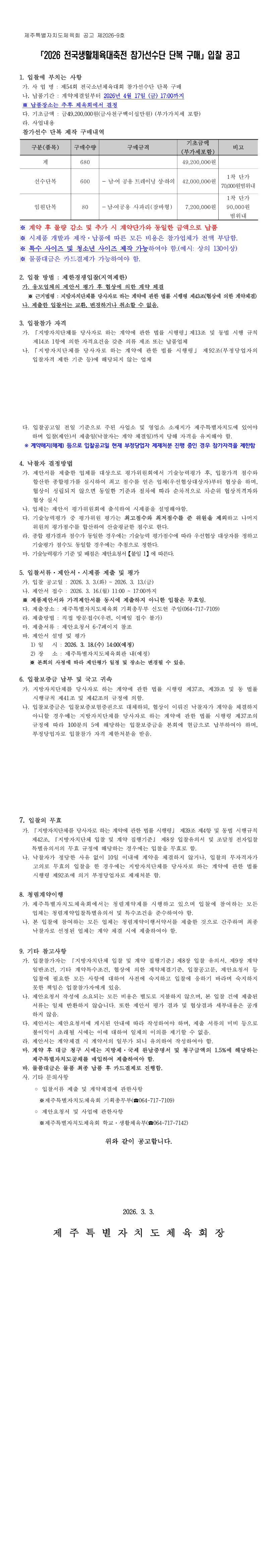 2026 전국생활체육대축전 참가선수단 단복 구매 입찰 공고 |