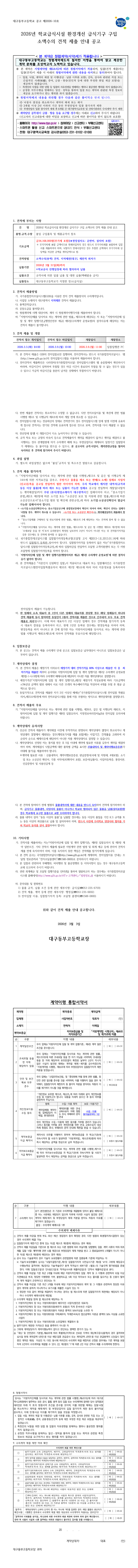 대구동부고 2026년 학교급식시설 환경개선 급식기구 구입 소액수의 견적 제출 안내 공고 |