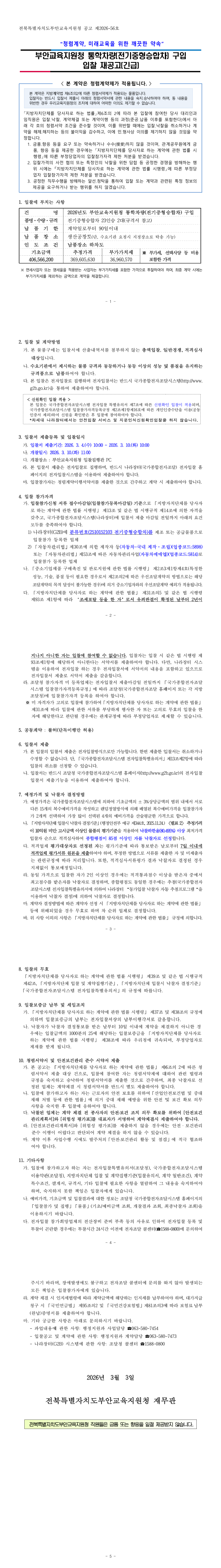 [재공고] 2026년 부안교육지원청 통학차량(전기중형승합차) 구입(긴급) |