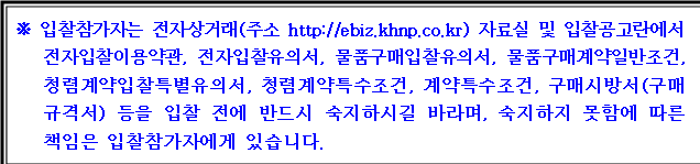 카. 이 공고에서 기술되지 않은 사항은 한수원(주) 계약규정에서 정한 바에 따릅니다.