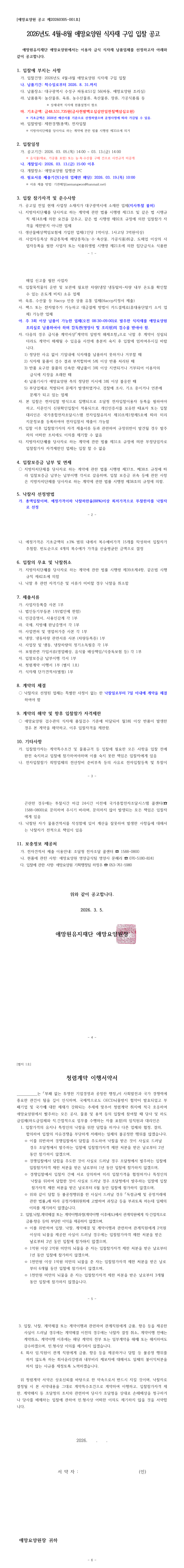 2026년도 4~8월 애망요양원 식자재 납품업체 선정 |