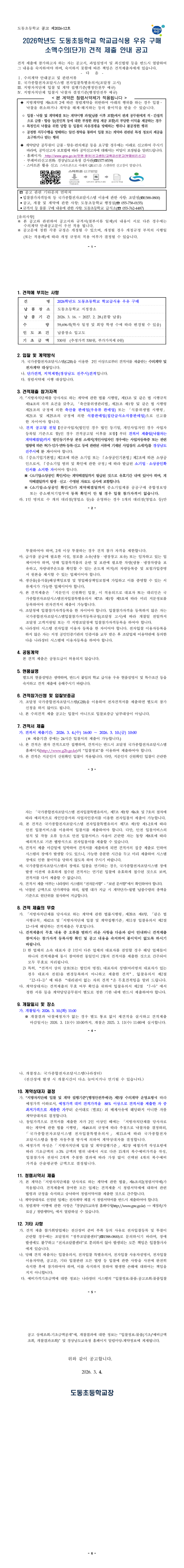 2026학년도 도동초등학교 학교급식용 우유 구매 소액수의{단가] 견적제출 안내 공고 |