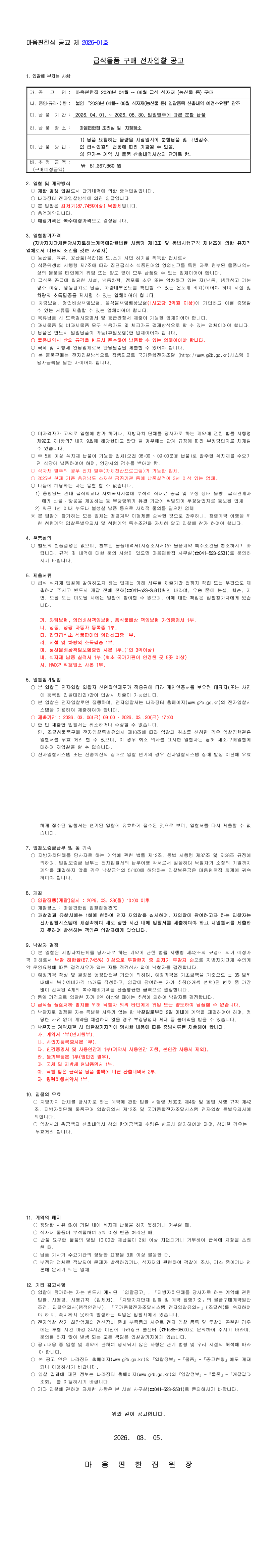 마음편한집 2026년 04월~06월 급식 식자재(농산물등)구매 |