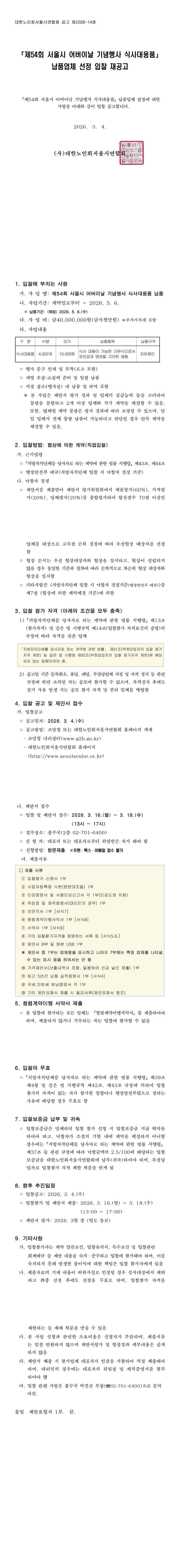 제54회 서울시 어버이날 기념행사 식사대용품 납품(재공고) |