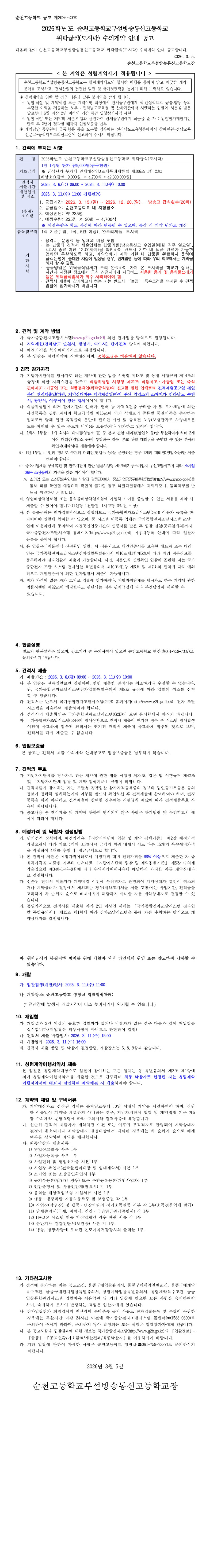 2026학년도 순천고등학교부설방송통신고등학교 위탁급식(도시락) 수의계약 안내 공고 |