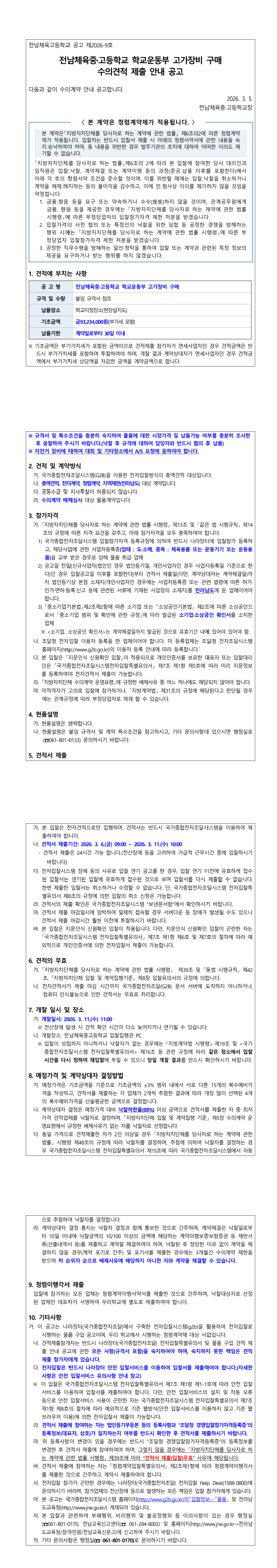 전남체육중 ·고등학교 학교운동부 고가장비 구매 수의견적 제출 안내 공고 |