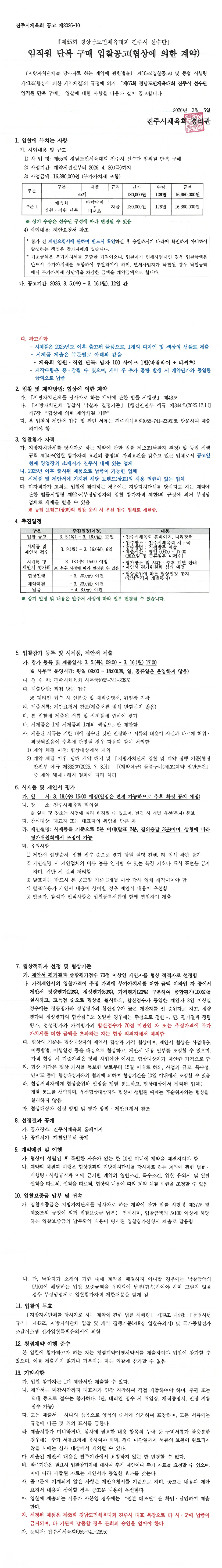 제65회 경상남도민체육대회 진주시 선수단 임직원 단복 구매 재공고 입찰 |