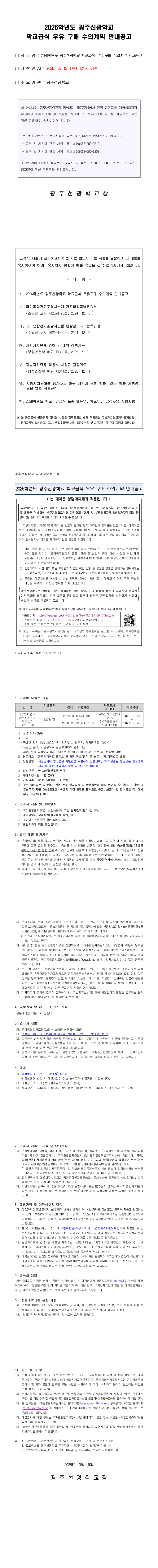 2026학년도 광주선광학교 학교급식 우유구매 수의계약 안내 공고 |