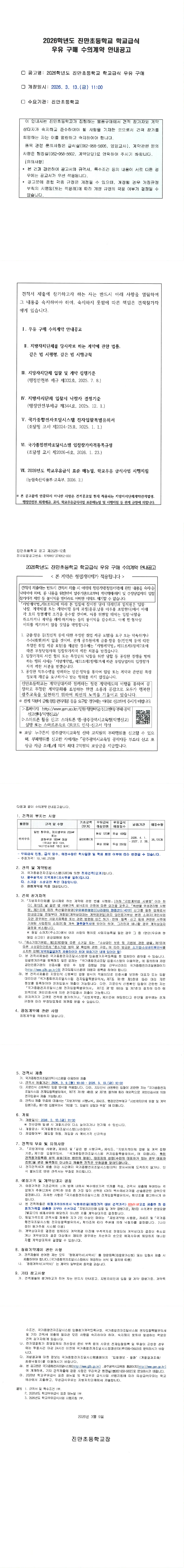 2026학년도 진만초등학교 학교급식 우유 구매 수의계약 안내공고 |