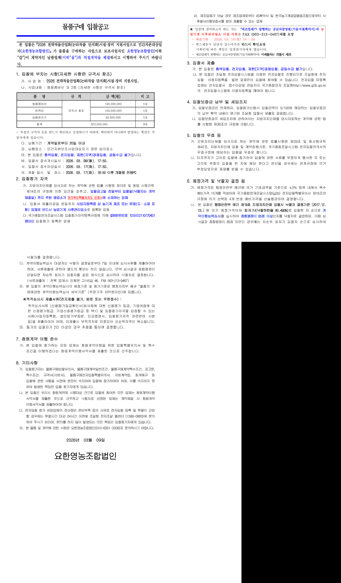 26년 전략작물산업화(논타작물 단지화) 시설·장비 지원사업(범용콤바인 외 2종) 구입 |