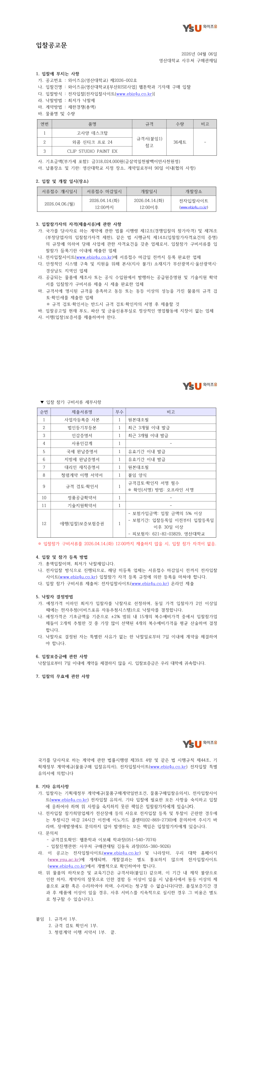 와이즈유(영산대학교)[부산RISE사업] 웹툰학과 기자재 구매 입찰 |