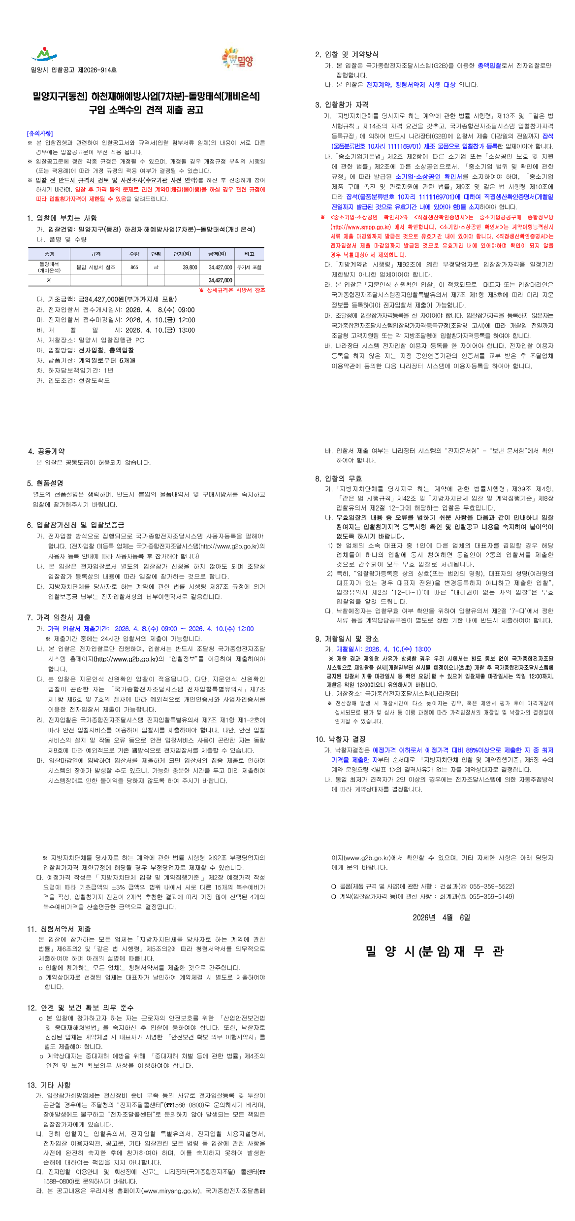 밀양지구(동천) 하천재해예방사업(7차분)-돌망태석(개비온석) 구입 소액수의 견적 제출 |
