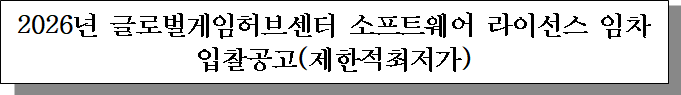 ㅇ 입찰건명 : 2026년 글로벌게임허브센터 소프트웨어 라이선스 임차
