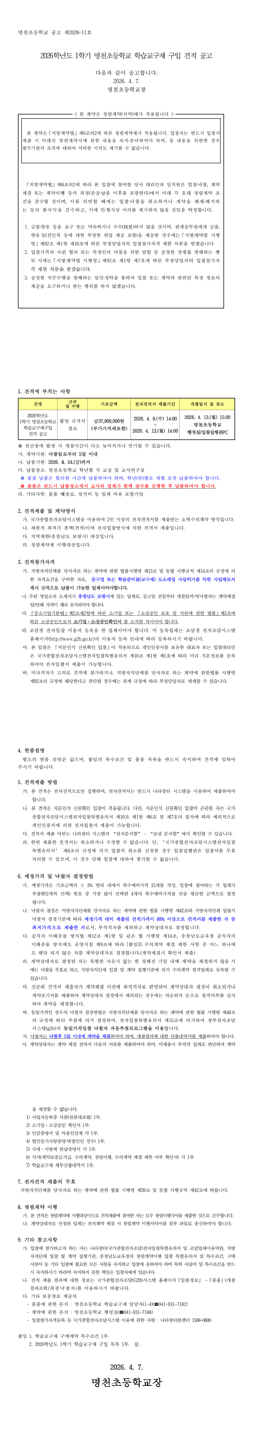 2026학년도 1학기 명천초등학교 학습교구재 구입 견적 공고 |