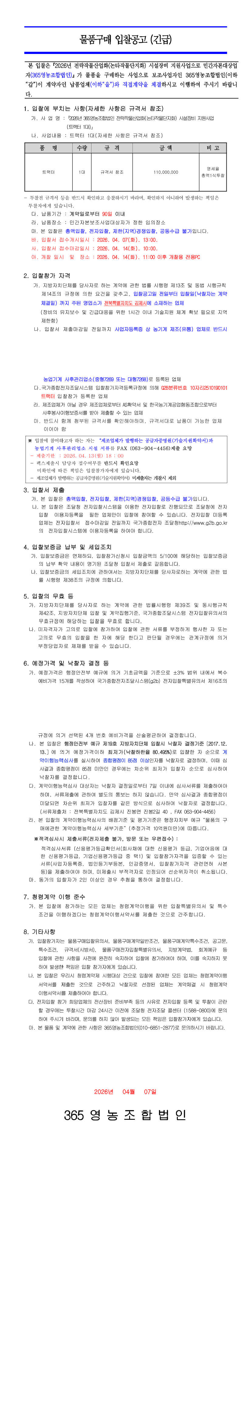 2026년 365영농 전략작물산업화(논타작물단지화) 시설장비 지원사업 (트랙터 1대) |