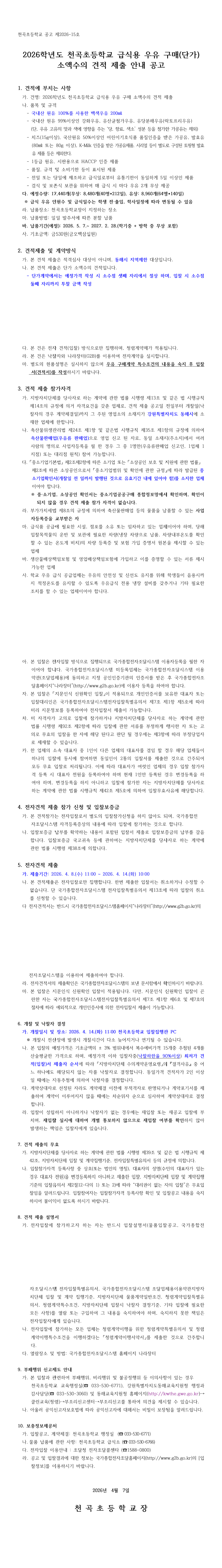 2026학년도 천곡초등학교 급식용 우유 구매(단가)소액수의 견적 제출 안내 공고 |