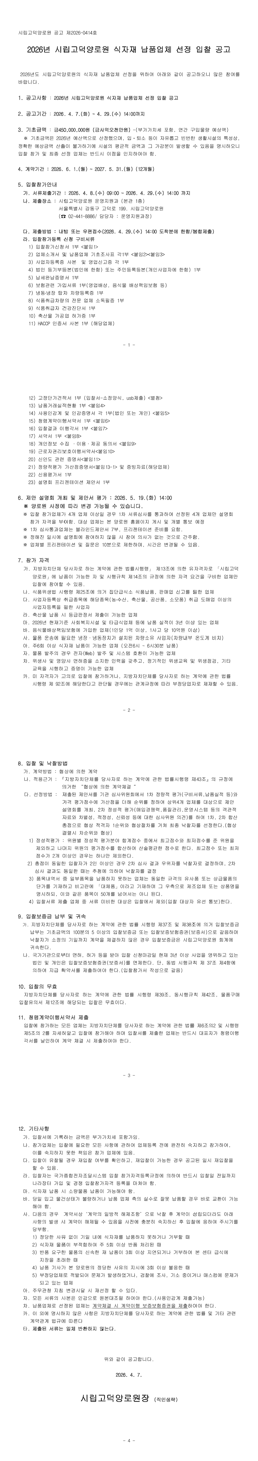 2026년 시립고덕양로원 식자재 납품업체 선정 입찰 공고 |