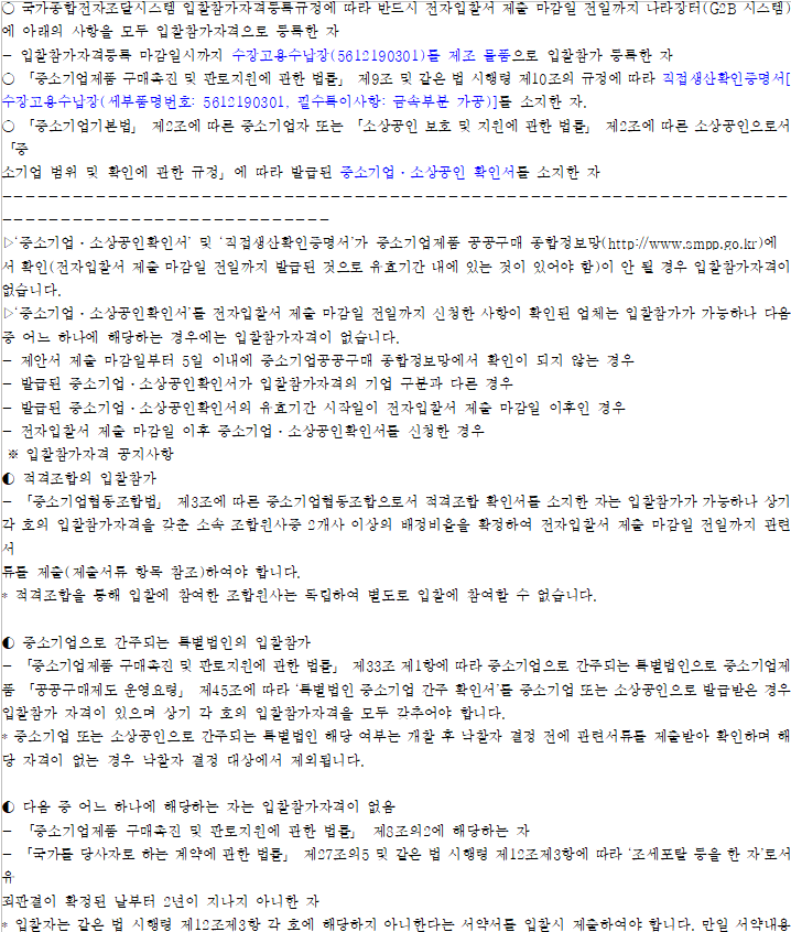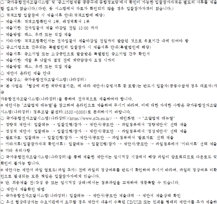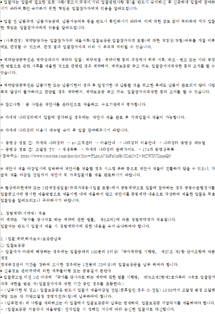 기타 세부사항은 전자입찰 공고서에 첨부된 과업내용서, 내역서 등을 반드시 확인하시기 바랍니다.