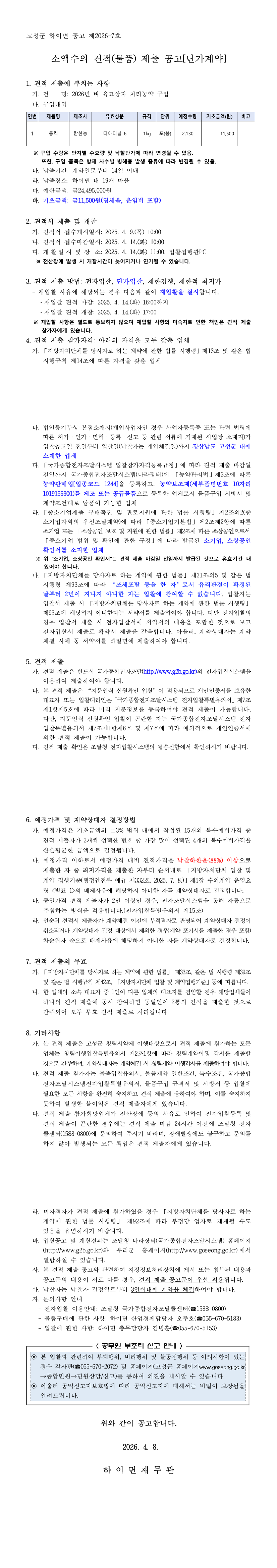 2026년 벼 육묘상자 처리농약 구입[단가계약] 입찰 공고 |