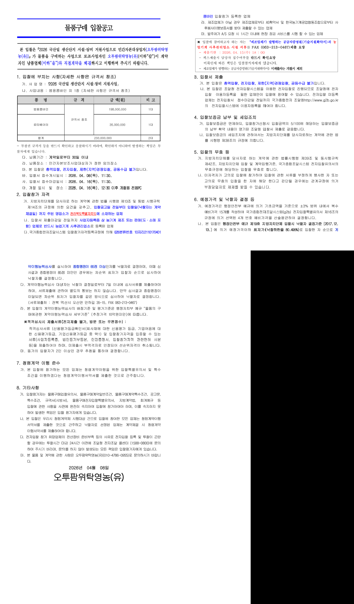 2026 국산밀 생산단지 시설·장비 지원사업 |