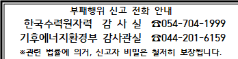 한국수력원자력㈜ 조달처 신규건설계약부 (Tel. 054-704-5468, Fax 054-704-5499)