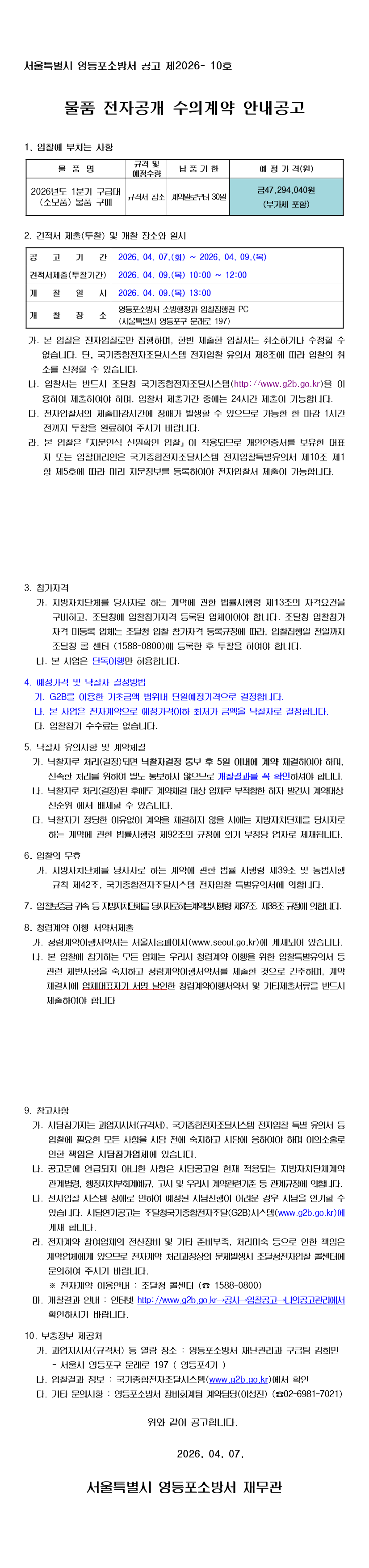 영등포소방서 2026년 1분기 구급대 물품(소모품) 구매 |