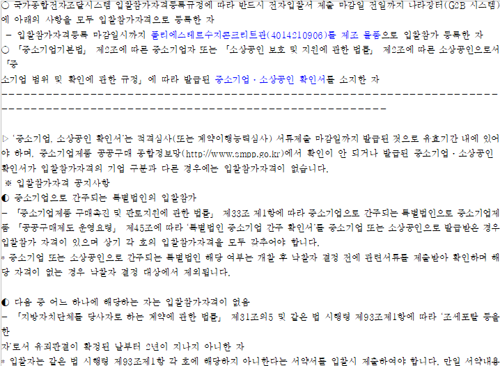 제조물품으로 제한 (경쟁입찰참가자격등록증에 공고서상 물품분류가 제조물품으로 등록되어 있어야 함)