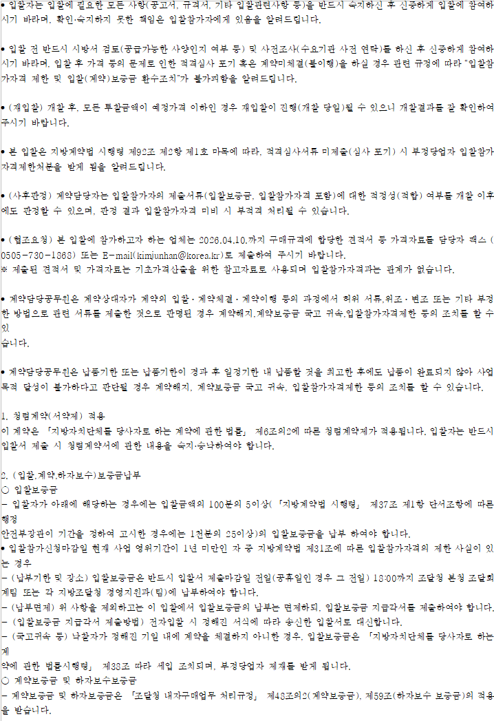 다. 이 입찰과 관련하여 추가 문의사항이 있으면 아래 담당자에게 연락하시기 바랍니다.