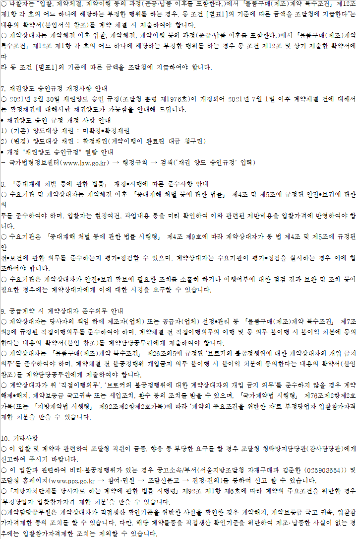 기타 세부사항은 전자입찰 공고서에 첨부된 과업내용서, 내역서 등을 반드시 확인하시기 바랍니다.