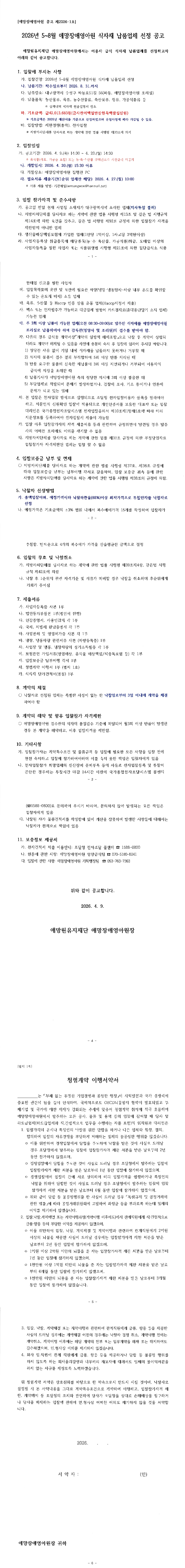 2026년 5~8월 애망장애영아원 식자재 납품업체 선정 |