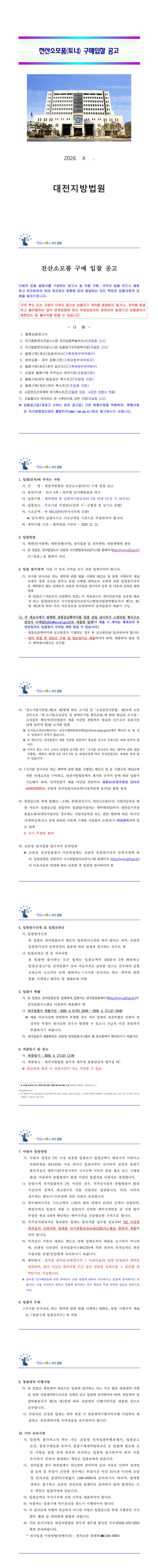 대전지방법원 2026년 전산소모품(토너) 구매입찰(단가계약) 공고 |