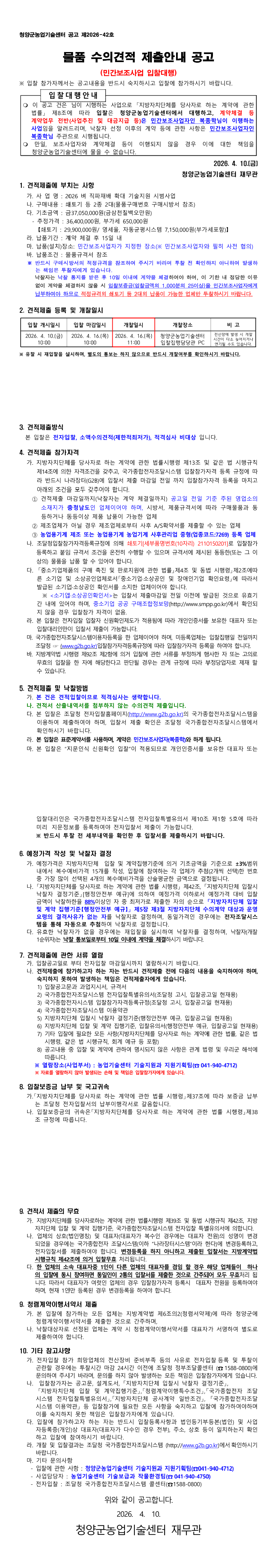 2026년 벼 직파재배 확대 기술지원 시범사업[민간보조사업 입찰대행) 소액수의 견적제출 공고 |