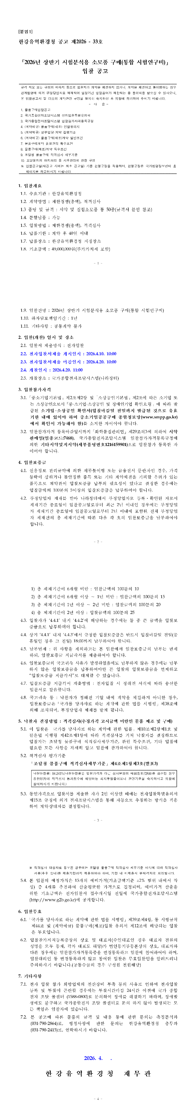 2026년 상반기 시험분석용 소모품 구매요청건 (통합 시험연구비) |