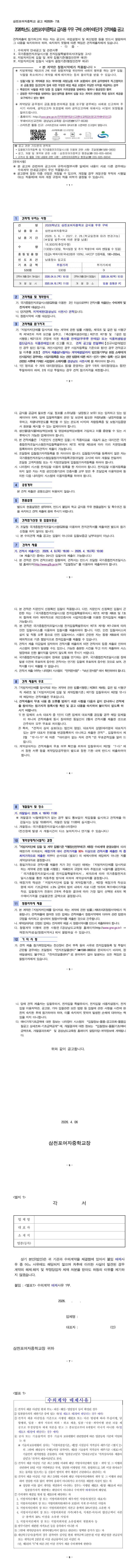 2026학년도 삼천포여자중학교 급식용 우유 구매 소액수의(단가) 견적 제출 공고 |