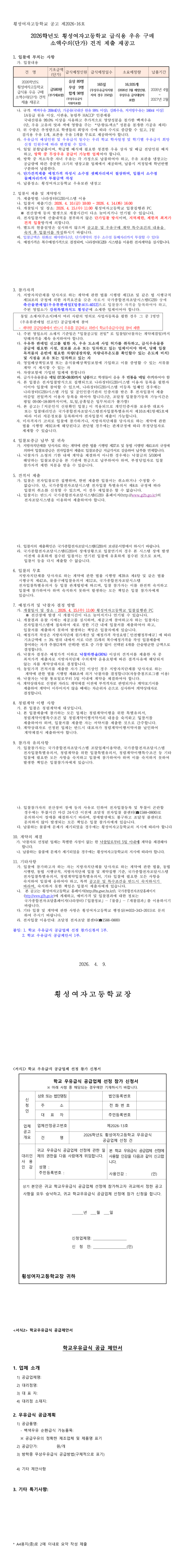 2026학년도 횡성여자고등학교 급식용 우유 구매 소액수의(단가) 견적 제출 재공고 |