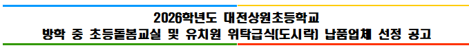 2026학년도 대전상원초 방학 중 초등돌봄교실 및 유치원 위탁급식(도시락) 납품업체 선정 공고