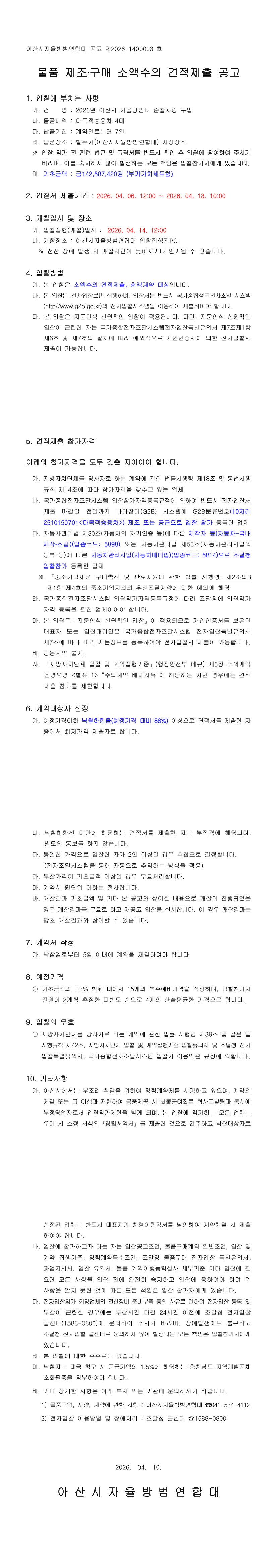 2026년도 아산시자율방범연합대 순찰차량 구입 |