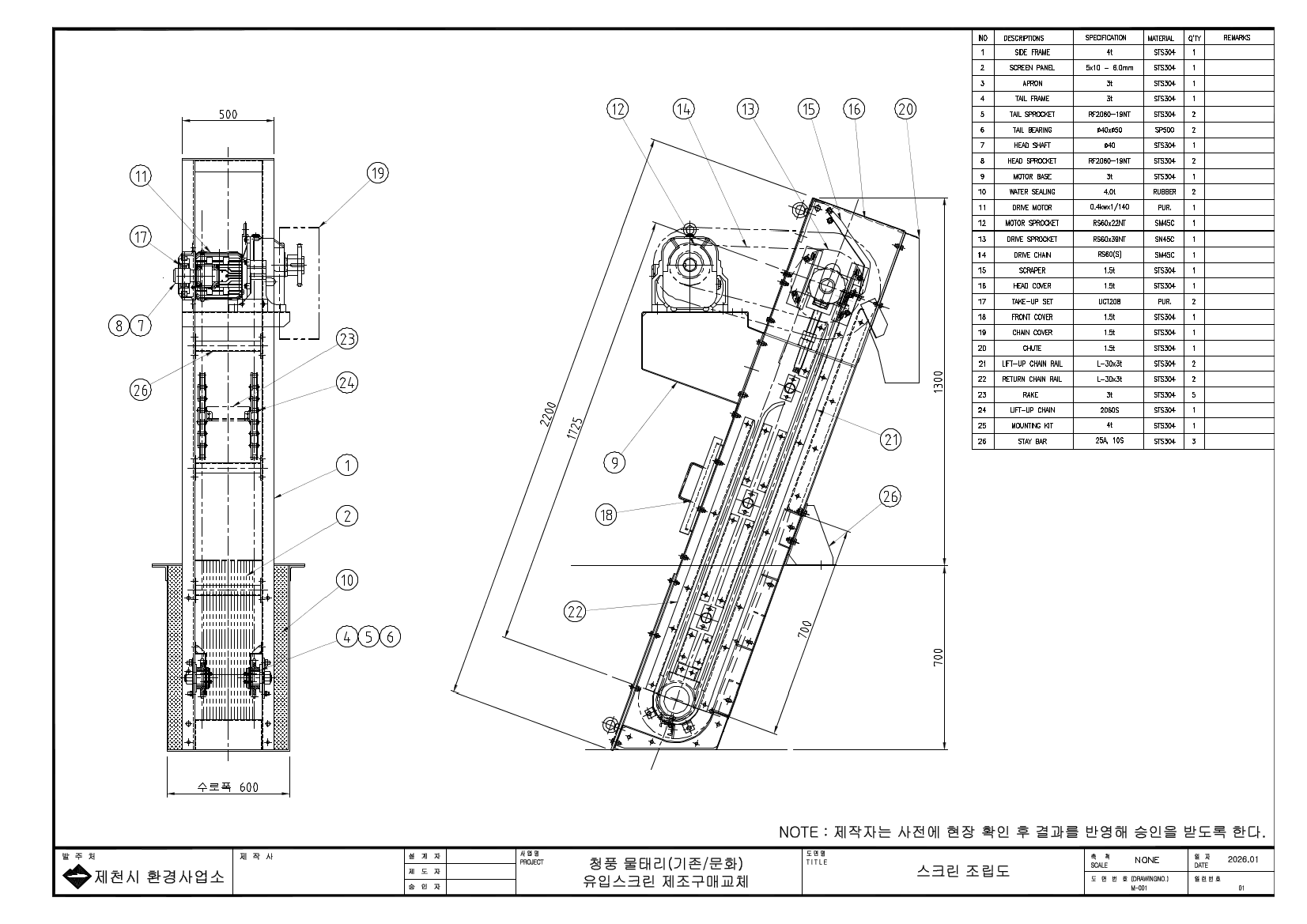 청풍(기존, 문화) 하수처리장 세목스크린 제조구매설치 |